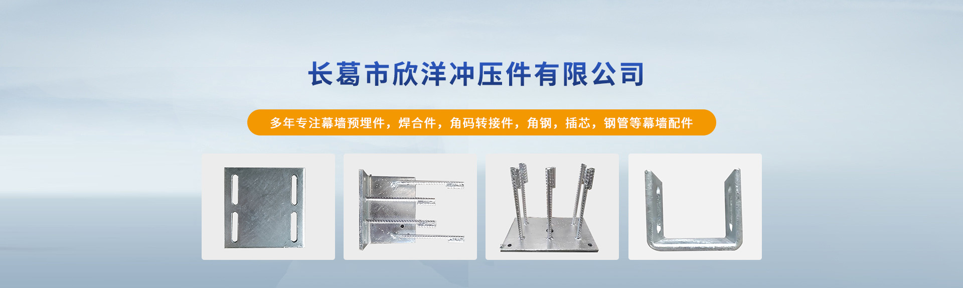 長葛市欣洋沖壓件有限公司將秉承"質優價廉,服務至上,互惠互利"的企業宗旨,依靠專業的技術和完善的企業管理體系,給廣大裝飾企業提供齊全的幕墻預埋件,角碼,幕墻插芯,角鋼,槽鋼,鋼管等幕墻配件產品及一站式的服務。